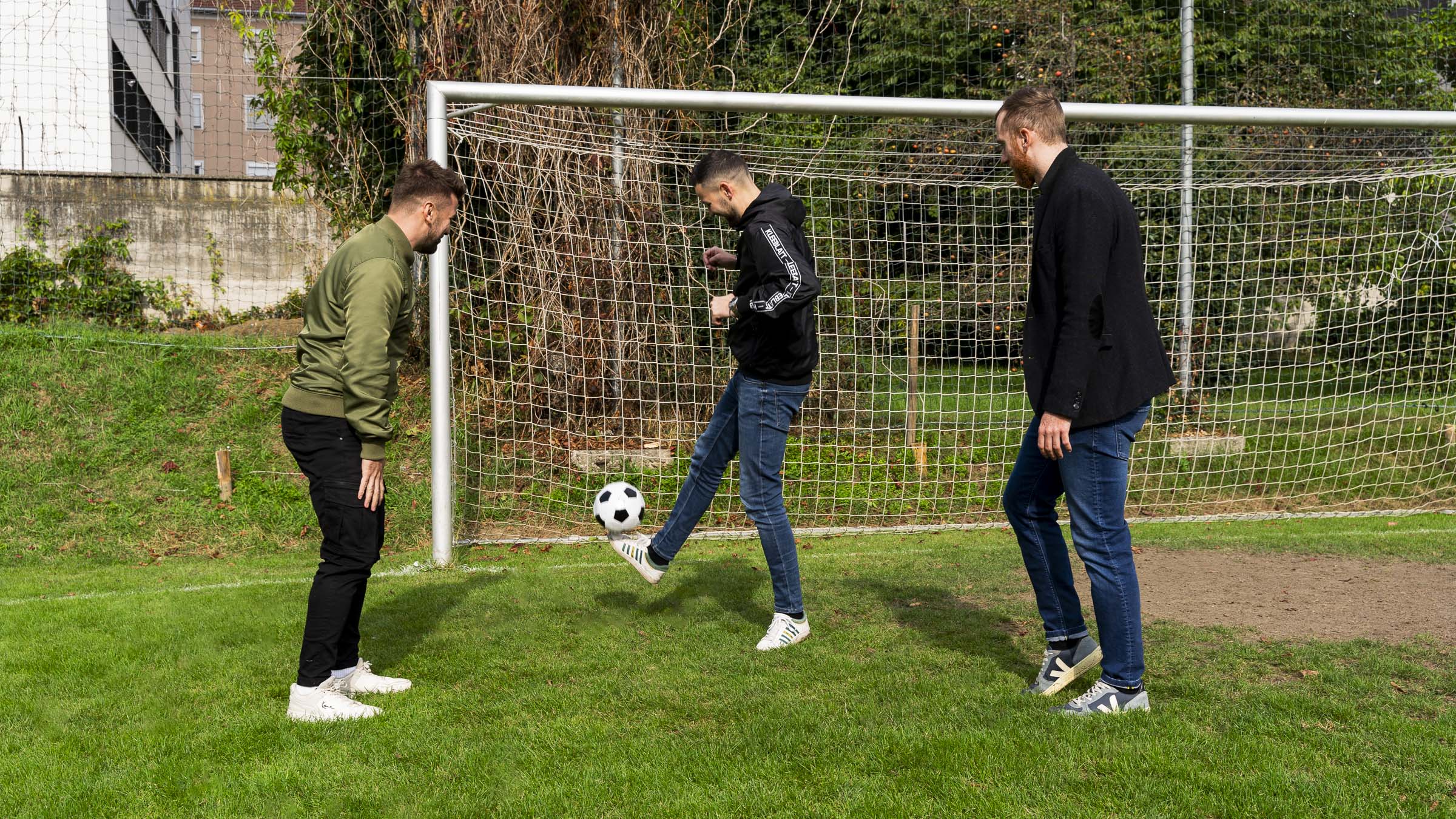 hosten den wöchentlichen Fußball-Podcast „Die beste Liga der Welt“. Ihre Begeisterung für die beliebteste Sportart der Welt wollen die drei Freunde schon mit den Jüngsten teilen.